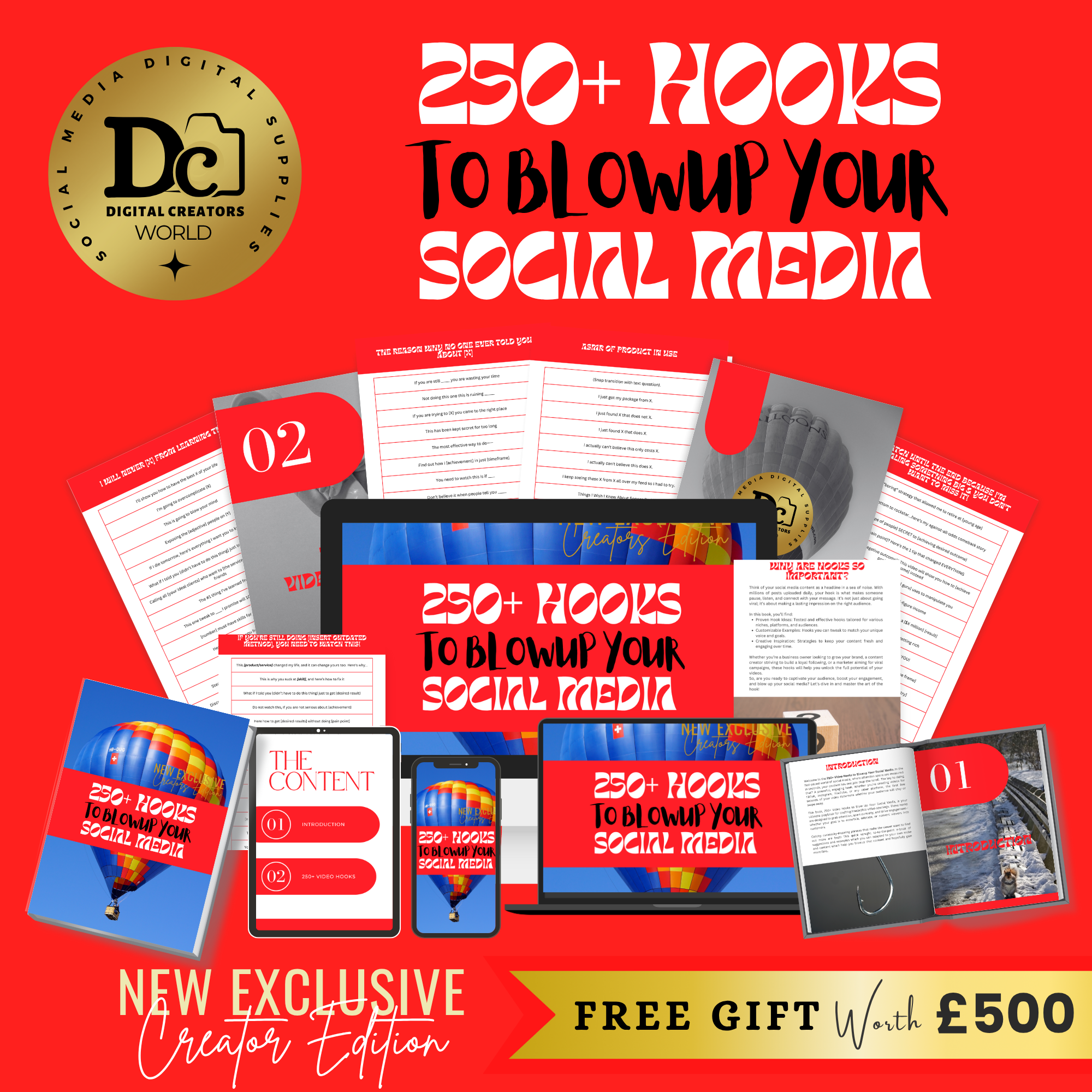This β250+ Video Hooks to Blow Up Your Social Mediaβ eBook is your ultimate content-creation cheat sheet β packed with proven attention-grabbing openers that help your videos go viral across TikTok, Instagram Reels, YouTube Shorts, and more!